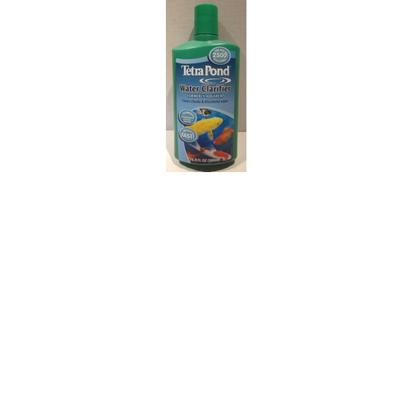 ENGLISH: Size 16.9 fl oz and treats 2500 gallons. Water Clarifier quickly clumps contaminants so they can be easily removed by filtration. Will not harm pond life and plants (when used as directed). Works fast!