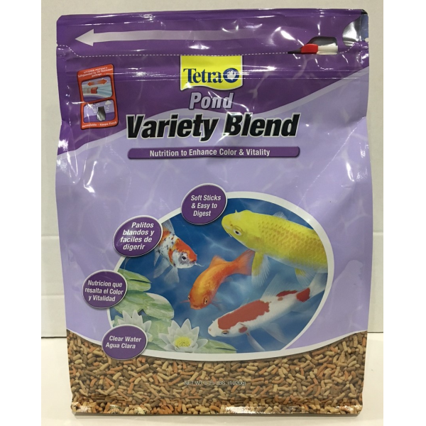 ESPAÑOL: TetraPond. Variety Blend Capacidad de 2.25 Libras. Incluye: Pond Stick: ideal para la alimentación básica. Koi Vibrance : mejora la coloración natural. WheatGerm Sticks: para la salud y la vitalidad.
