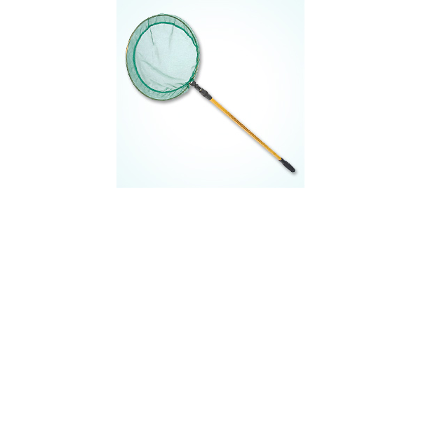 INGLES: Use to skim leaves and debris off pond surface, and remove algae. 14" diameter ring x 4" shallow net with telescoping handle that extends from 4 ft. to 6 ft. Hexagonal construction makes the shaft very sturdy even at full extension.