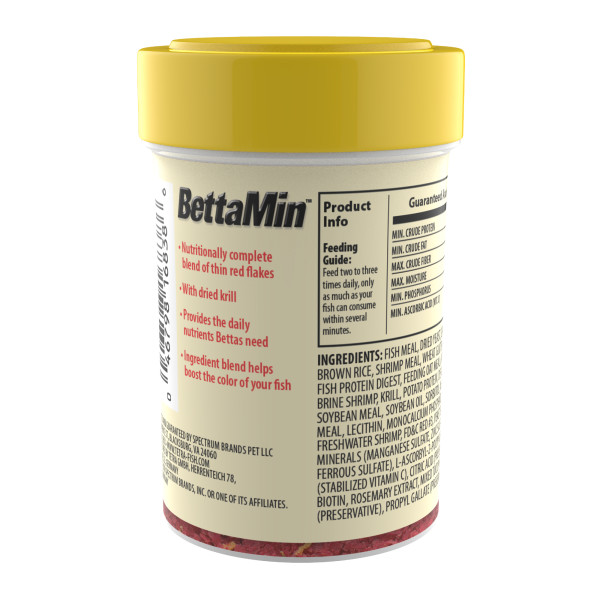 ESPAÑOL: BettaMin. Tropical Medley Alimentación equilibrada que promueve el color de los peces siameses que luchan (Betta Splendens). Esta combinación es especializada para los pequeños, delgados de color rojo. Mezclado con ProCare patentado para una salud óptima. Tamaño 0.81 oz.