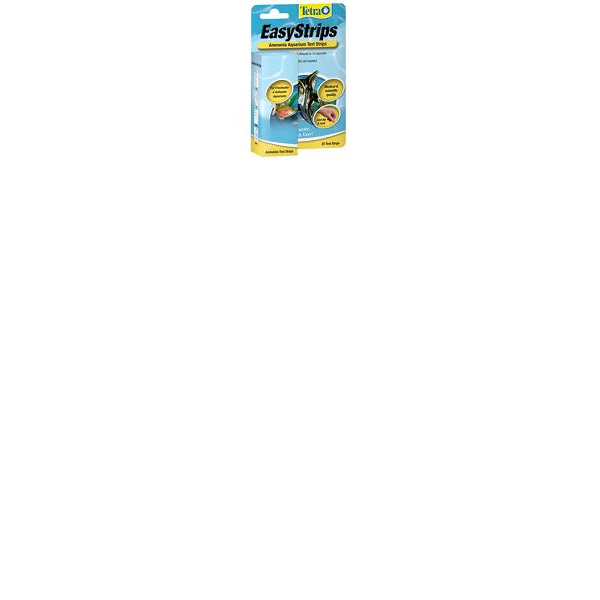 ENGLISH: Tetra. EasyStrips. Ammonia Aquarium. For freshwater and Saltwater Aquariums. Test Strips. Results in 10 seconds. No vial needed. Test for Ammonia When: Setting up aquarium or making water changes. Tap water contains chloramines. Fish breathe rapidly, dart around tank. Fish stop eating or die without visible symptoms. To remove ammonia, do a partial water change and use Tetras AmmoniaSafe. Instructions for using Tetra EasyStrips Ammonia Aquarium Test Strips: 1.Remove one test strip from bottle and replace cap tightly. 2. Hold strip at end dip into aquarium water, swishing back and forth in the water for 10 seconds. 3. Remove and shake excess water from strip. 4. Compare immediately to the color chart. Important: Keep cap on bottle tightly between uses. Store at room temperature. Do not expose to moisture. Do not remove drying agent from bottle as test results may not be accurate over time. Keep out of reach of children. Refer to the bottom of enclosed bottle for lot number and use by date. Note: For the most accurate reading, compare results to color chart on enclosed bottle.