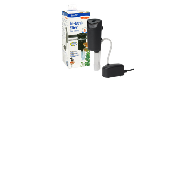 INGLES: For the ultimate in convenience and quiet, choose a Whisper In-Tank Filter. This filter mounts on the inside of the aquarium, rather than hanging from the outside -- making it possible to place the tank flush against a wall. The 3i In-Tank Filter uses air bubbles to move water up the airlift tube and through the filter cartridge making it ideal for keeping small fish and breeding fish. The Whisper In-Tank filter adjusts easily to high or low water levels with mounting suction cups and/or bracket. Each unit includes the filter, air pump, two feet of airline tubing and one Small Whisper Bio-Bag filter cartridge.