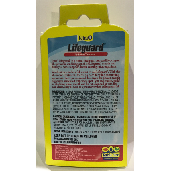 ENGLISH: Tetra. Lifeguard Tetra With no need to guess the time taken when treating freshwater fish. A unique spectrum, comprehensive, non-antibiotic agent, is Lifeguard clinical signs of the disease in its earliest stages in freshwater fish. Added to the aquarium water, the powerful oxidizing action HaloShield ® attacks and destroys the microorganisms that cause disease in fish.