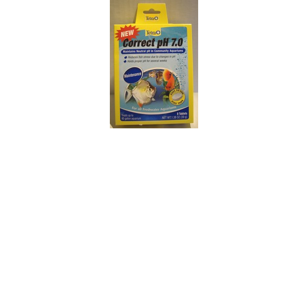 ENGLISH: Tetra. Correct pH. Maintains neutral pH in community aquariums. Reduces fish stress due to changes in pH. Holds proper pH for several weeks. For all freshwater aquariums. Treats up to 80 gallon aquarium. 8 tablets. Correct pH 7.0. Tetra Fizz Tabs are fast dissolving premeasured tablets that make caring for your aquarium faster, easier, and more convenient. Maintaining the proper pH of aquarium water is important to ensure a healthy environment, Changes in pH can be caused by the breakdown of waste or local tap water with low pH or low alkalinity. Tetra Correct pH maintains the recommended levels in your aquarium to prevent harmful fluctuations.