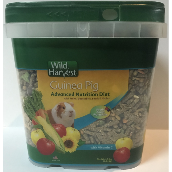 Wild Harvest Advanced Nutrition Diet for Guinea Pigs provides the ultimate nutrition your guinea pig requires for developing and maintaining good health. our scientists developed a unique formula containing a tantalizing array of high fiber pellets and a delicious mix of healthy fruits and vegetables to provide your pet with a well rounded diet. with this formula theyll receive important protein, vitamins, minerals, and fat needed for a strong, healthy body.