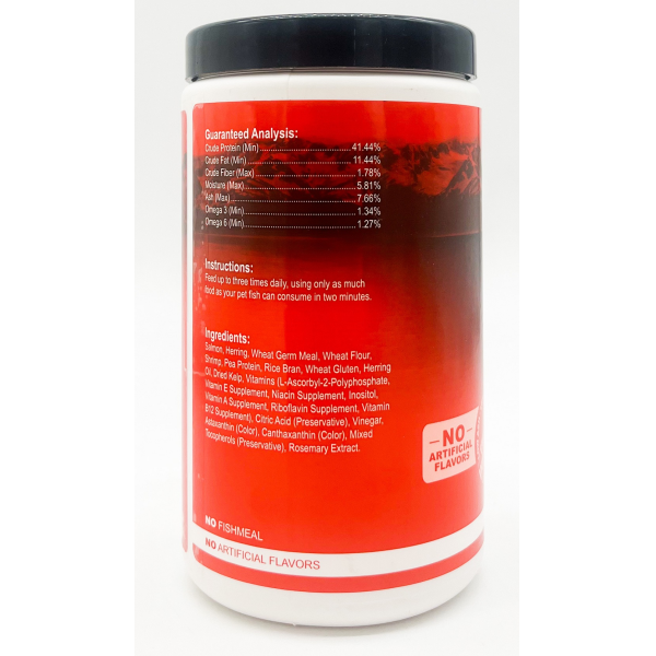 Daily diet for all Cichlids - Made with Alaskan Salmon and Whole seafood - Salmon skins for vibrant fish colors - Omega 3 and 6 for strong immune systems - Formulated for low waste - Low in ash for cleaner water* (*When used as directed).