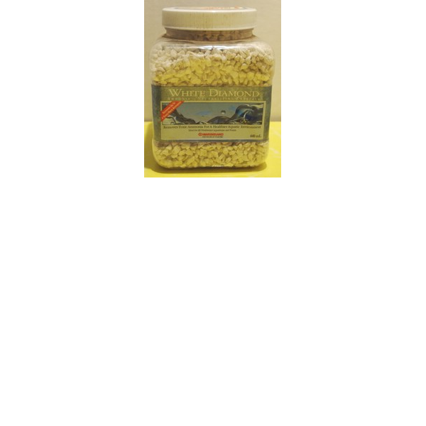 INGLES: White Diamond Ammonia-Neutralizing Crystals are ideal for all freshwater aquariums and ponds. White Diamond removes up to 4 times more deadly ammonia to keep water clean and fish-safe. It protects against sudden ammonia "spikes" and helps control the presence of ammonia...especially during the break-in period. 440 ml.