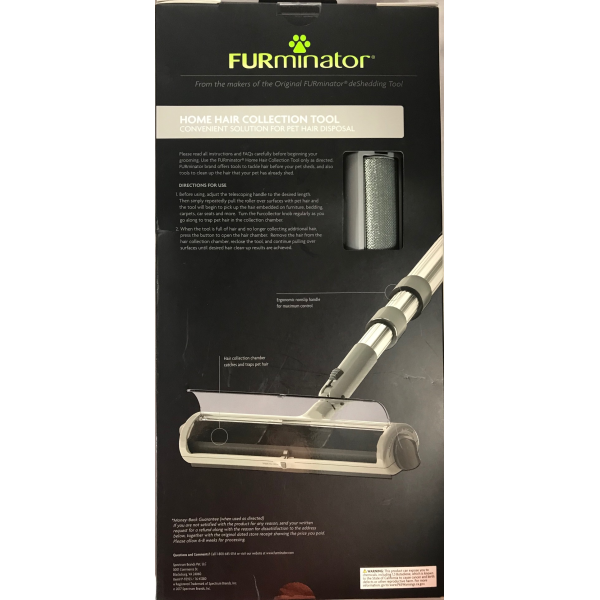 Directions for use: 1. before using. adjust the telescoping handle to the desired length. then simply repeatedly pull the roller over surfaces with pet hair and the tool will begin to pick up the hair embedded on furniture, bedding, carpets, car seats and more. turn the furcollector knob regularly as you go along to trap pet hair in the collection chamber.