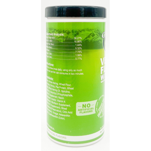 Daily diet for all herbivores - Made with Alaskan Salmon and Whole seafood - Salmon skins for vibrant fish colors - Omega 3 and 6 for strong immune systems - Formulated for low waste - Low in ash for cleaner water* (*When used as directed) - With kelp for digestion.