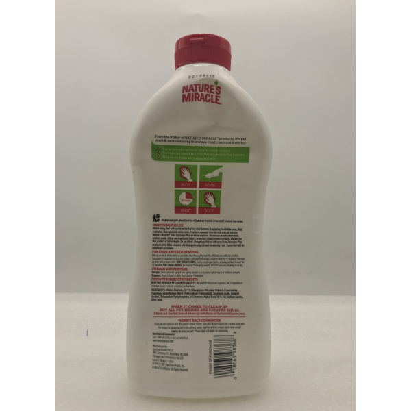 °Natures Miracle formula produces enzymes when they come in contact with biological waste, such as urine, feces or pet vomit. The enzymatic formula will continue to work as long as the debris is present, removing the molecules that cause stains and odors.