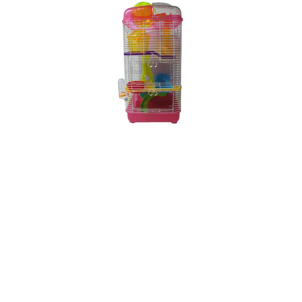 ESPAÑOL: Jaula Grande Rosada para hamster o pequeños roedores. Incluye una rueda para ejercicios, dos casitas, varios tuneles, un tobogan, un bebedero y un comedero. Medidas: