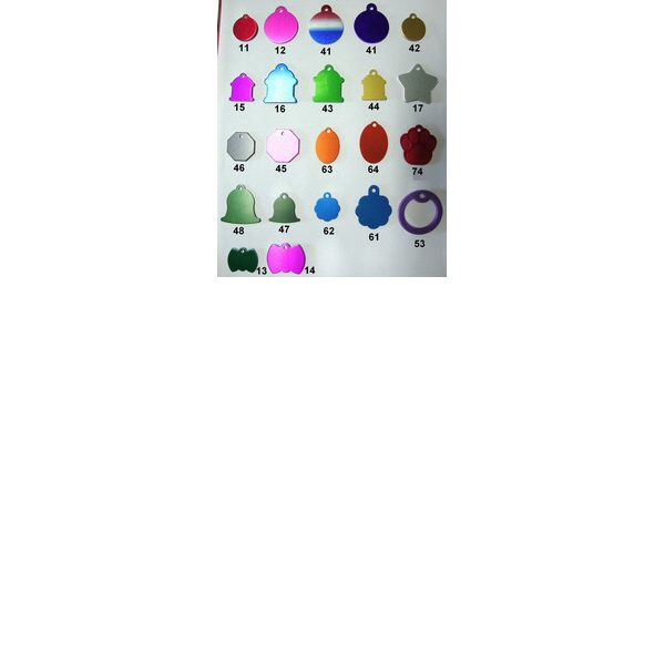 ESPAÑOL: Plaquitas de identificacion para sus mascotas,vienen en varios tamaños y colores .Ver tabla ENGLISH: Identification plates for your pets, comes with different sizes and colors. view image