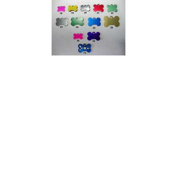 Plaquitas de identificacion para sus mascotas,vienen en varios tamaños y colores ver tabla