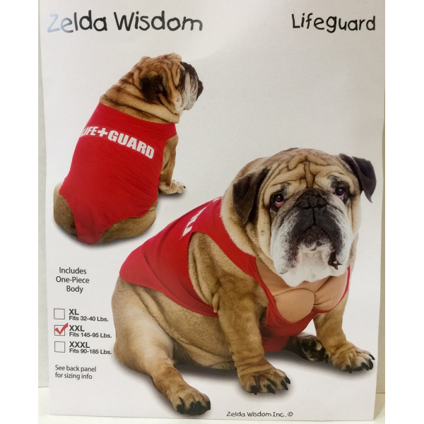 DISFRASES LIFEGUARD DOG COSTUME XXLARGE 4450-XXL Sirve para mascotas de 45 a 95 libras, incluye disfraz.. Medidas: Cuello 18"-22", 45.5 x 56 cm Pecho 26"-33", 66 x 84 cm Largo 22"-27", 56 x 68.5 cm