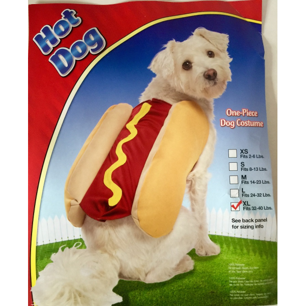 DISFRASES HOT DOG, DOG COSTUME XX-LARGE 5008-XXL Sirve en mascotas de 45 a 95 libras, incluye disfraz.. Medidas: Cuello 18"-22", 45.7 x 56 cm Pecho 26"-33", 66 x 84 cm Largo 22"-27", 56 x 68.5 cm