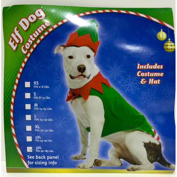 DISFRASES ELF DOG COSTUME XXX-LARGE 5028-XXXL tamaño sirve en mascotas de 45 a 95 libras incluye disfraz y gorro