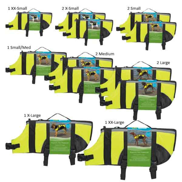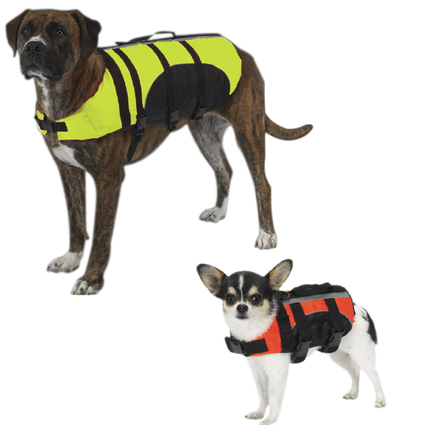 Other features include extra high visibility materials, dual reflective strips, a leash attachment loop, and quick pickup handles to make easy work of dog-overboard rescues. Three largest sizes feature an extra strap at belly for maximum safety.