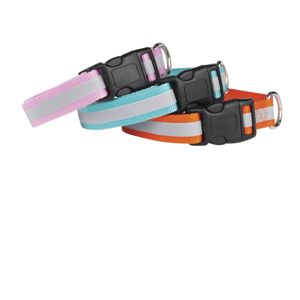Material: Durable nylon with full-length reflective tape; Plastic buckles
