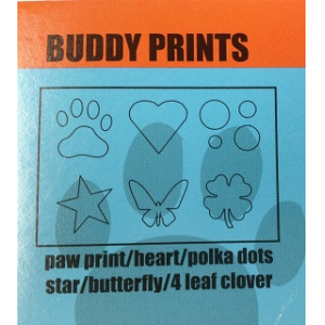 Estenciles para Pintar a las Mascotas "Buddy Prints" Formas: - Huella de Perro - Corazon - Circulos - Estrella - Mariposa - Trebol Para usar con las PETPAINT PREMIUM SPRAY