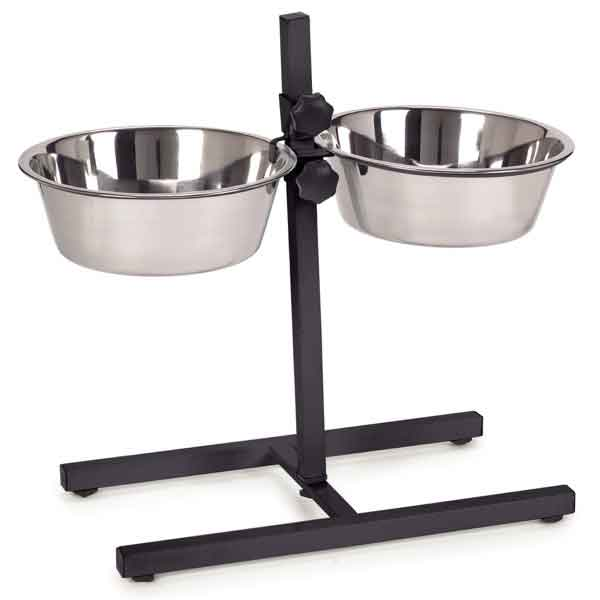 ProSelect® Adjustable Dog Diners feature a wide H-style base and two dishwasher-safe stainless steel bowls.