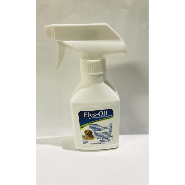 FLYS OFF. Insect Repellent for Dogs and Cats. Kill fleas, lice, ticks. Temporally Repels Gnats, Files, Mosquitoes. Pump-spray bottle Use Restrictions: Use only on dogs and non-food/non-feed surfaces to repel flies, gnats and mosquitoes. DO NOT USE ON PUPPIES LESS THAN 12 WEEKS OLD OR ON CATS. Consult a veterinarian before using this product on debilitated, aged, pregnant, nursing, or medicated animals. Sensitivities may occur after using ANY pesticide product for pets. Net Contents: 6 oz (177 ml)