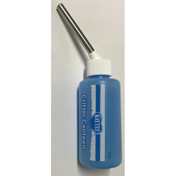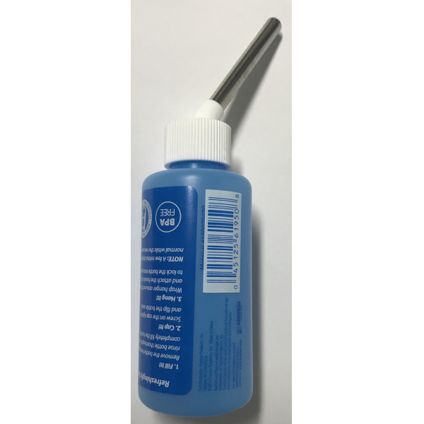 ESPAÑOL: Bebedero de Plastico Color Celeste Tiene un sistema anti goteo. Trae para colgar. 4 onzas (118ml) ENGLISH: Critter Canteen Bottle hanger inside Drip Resistant BPA FREE 4oz (118ml)