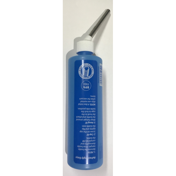 ESPAÑOL: Bebedero de Plastico Color Celeste Tiene un sistema anti goteo. Trae para colgar. 16 onzas ENGLISH: Critter Canteen Bottle hanger inside Drip Resistant BPA FREE 16oz