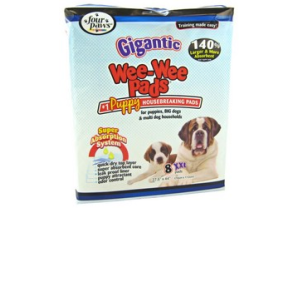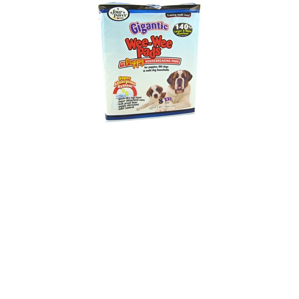 ESPAÑOL: Four Paws. Wee Wee Almohadillas Gigantes para perros grandes. Tienen una medida de 27.5 pulgadas de ancho por 44 pulgadas de largo. Eso es 140% más grande que nuestras almohadillas de tamaño regular. Son excelentes absorventes y neutralizan los olores. 8 Unidades por paquete.