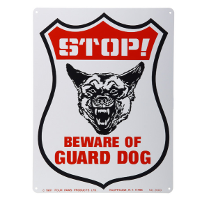 ESPAÑOL: Rotulo de Señales de Seguridad de Aluminio: Alto- Cuidado con el Perro Guardian. Medidas: