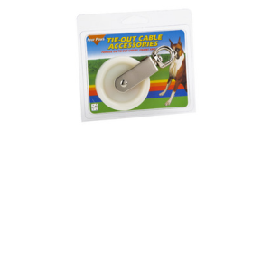 ENGLISH: Safety swivel pulley. Four Paws safety pulley has a swivel end to allow for safety so the animal will not tangle hinself within the cable. Four paws safety pulley can also be used for many other things around the home.