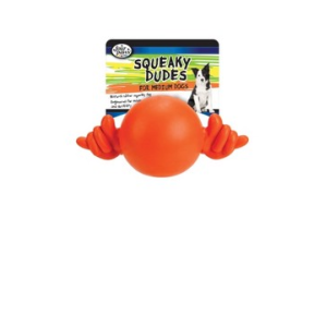 ENGLISH: Squeaky Freaky for small dogs. Natural rubber toy with sqeoker. Engineered for maximum strength and durability. Rubber toys are excellent for cleaning and massaging your dogs gums. Rubber toys are a great interactive toy for your dog to enjoy. Caution: Always supervise your dig when playing with all toys. Remove the toy from pet immediately if any part become loose or detached.