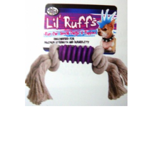 ENGLISH: Lil Ruffs. Virtually Indestructible. Fun for dogs. Engineered for maximum strength and durability natural rubber toy and cotton rope toy. Daily exercise is essential for promoting good health for your dog. This toy are designed to provide hours of interactive fun. Caution: It is recommended that dogs be supervised when playing with all toys. Remove toy from pet immediately if any part becomes loose or detached.