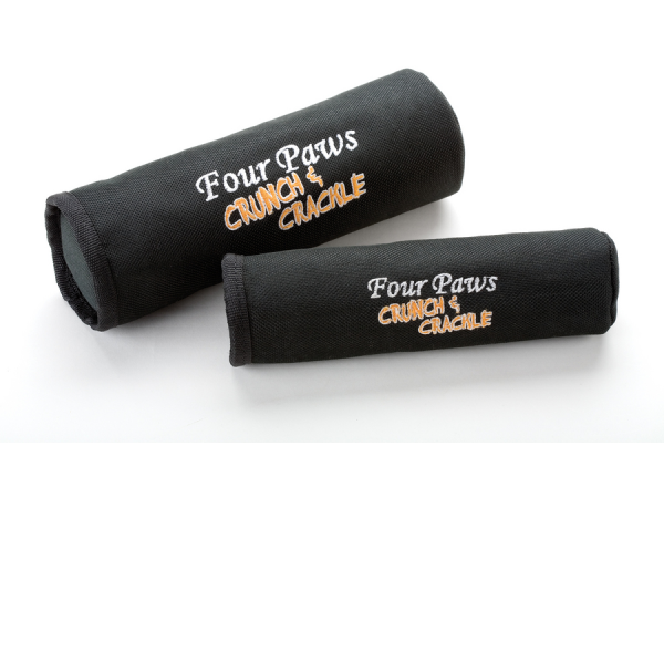 ENGLISH:Crunch & crujidos,Large, 9,5" (24,13 cm) A unique, virtually indestructible chew toy that encourages chewing and helps massage teeth and gums. Built with new and improved firehose material. Crunching and crackling noises along with a bell inside will keep dogs entertained for hours