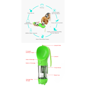 Size: 98*98*386mm Contenedor para agua, bolsa para desechos, contenedor para comida, pala para recoger desechos, contenedor para beber agua. Material: Thermoplastico.
