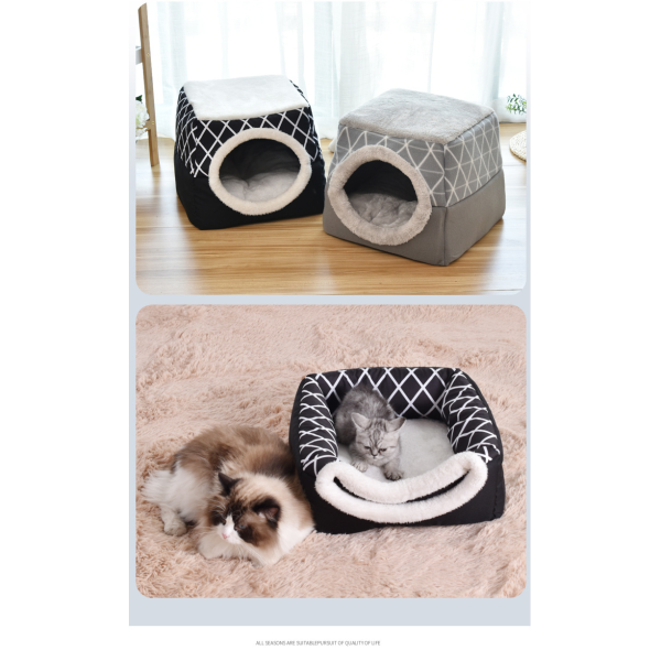 CAMA PARA MASCOTA TIPO ESCONDITE TERCIOPELO Y ESPUMA LARGE: 35X33X30 CM XLARGE: 38X38X34 CM