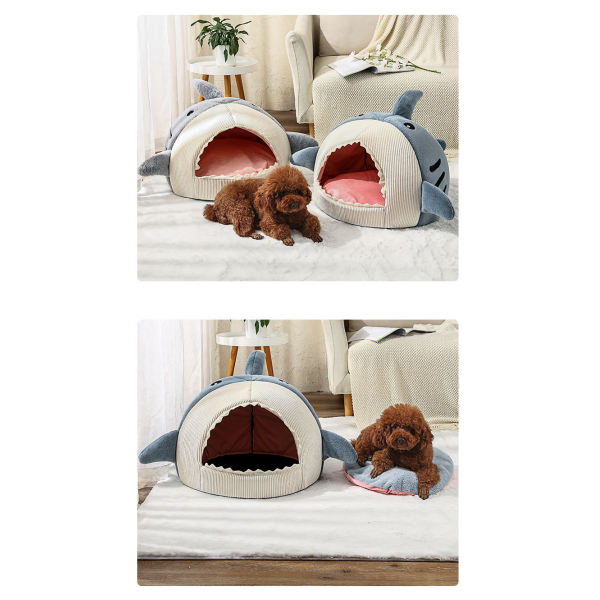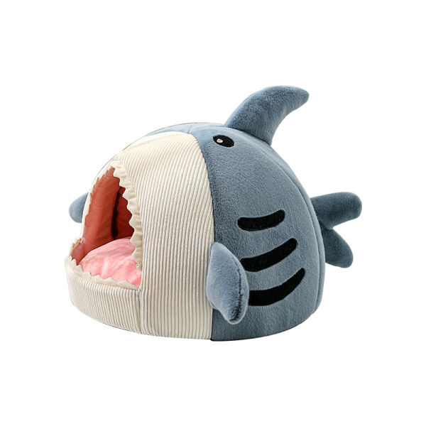 CAMA PARA MASCOTA TIPO ESCONDITE TIBURON PELUZA Y ALGODON DE POLIPROPYLENO LARGE: 35X33X30 CM XLARGE: 38X38X34 CM