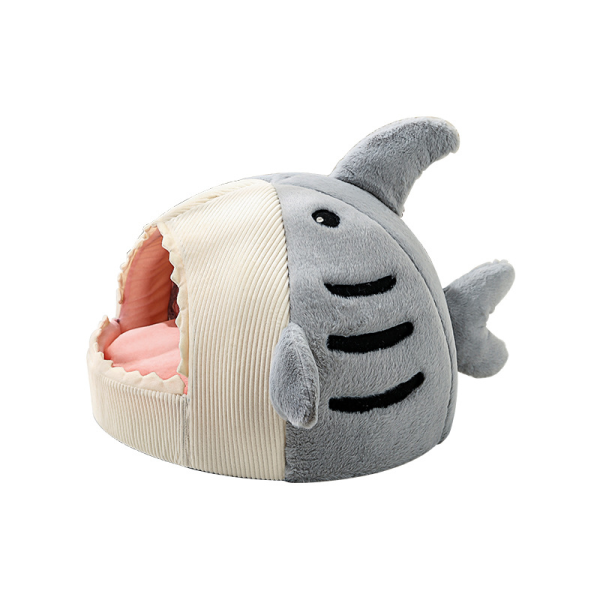 CAMA PARA MASCOTA TIPO ESCONDITE TIBURON PELUZA Y ALGODON DE POLIPROPYLENO LARGE: 35X33X30 CM XLARGE: 38X38X34 CM