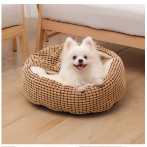 Cama redonda con cobija. Materiales: Terciopelo de maíz, propileno y algodon. Medidas: Small: 40 cm diámetro. Medium: 50 cm diámetro. Large: 60 cm diámetro. Xlarge: 70 cm diámetro.