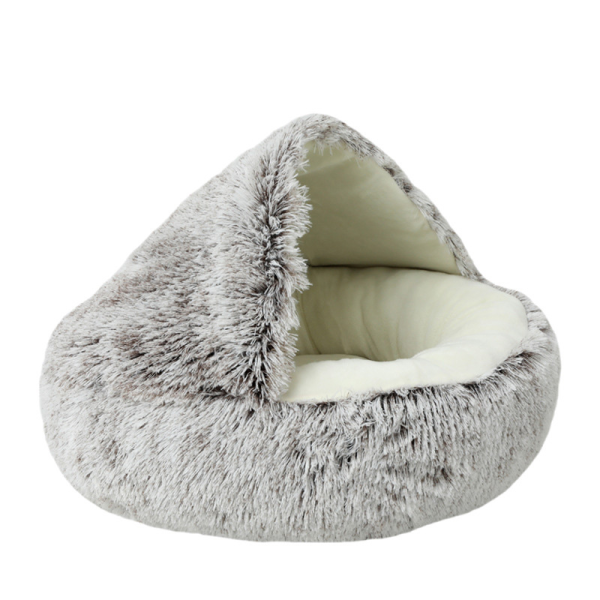 Cama redonda tipo cueva. Materiales: Felpa, algodón polipropileno, tela Oxford sin clips Medidas: Small: 40 cm diámetro. Medium: 50 cm diámetro. Large: 65 cm diámetro. Xlarge: 80 cm diámetro.