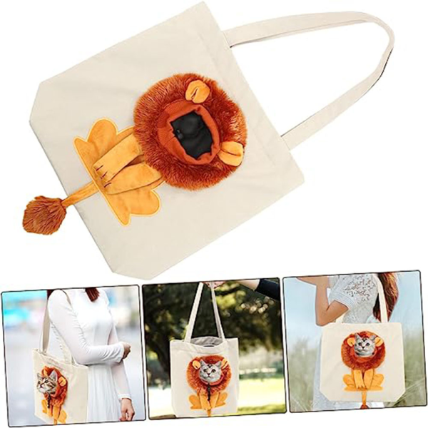 Bolso cabeza de leon beige. Material: Canva y algodon. Medidas: Small: 40 cm x 35 cm Large: 44 cm x 40 cm