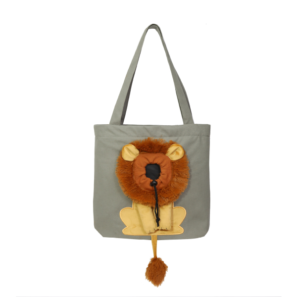 Bolso cabeza de leon gris. Material: Canva y algodon. Medidas: Small: 40 cm x 35 cm Large: 44 cm x 40 cm