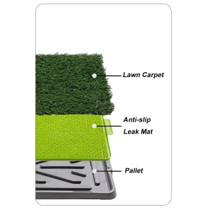 Bandeja de entrenamiento con zacate artificial 3 piezas. Material: Plastico y zacate artificial. Medidas: 43 cm x 68 cm.