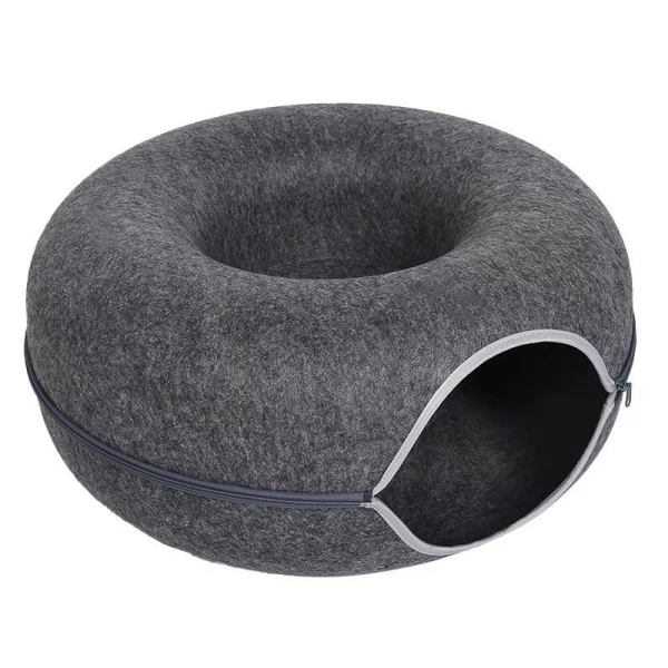 Cama para gato en forma de dona. Material: Felpa Medidas: 60 cm x 60 cm x 27 cm.