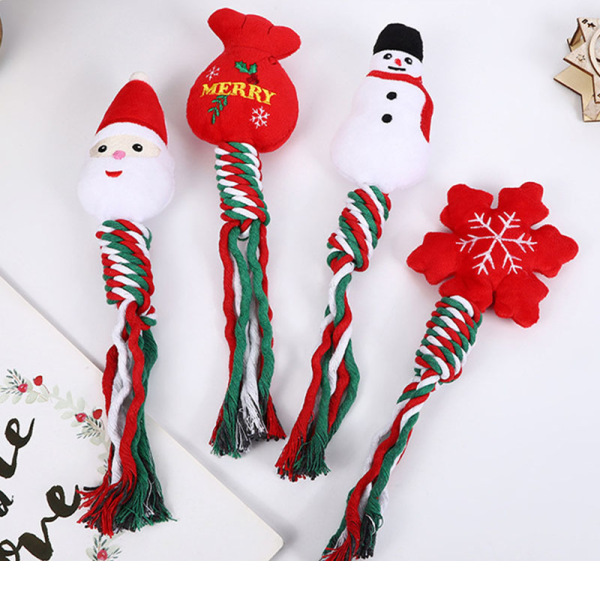 Juguete navideño con mecate. Medidas: 10 cm x 30 cm.