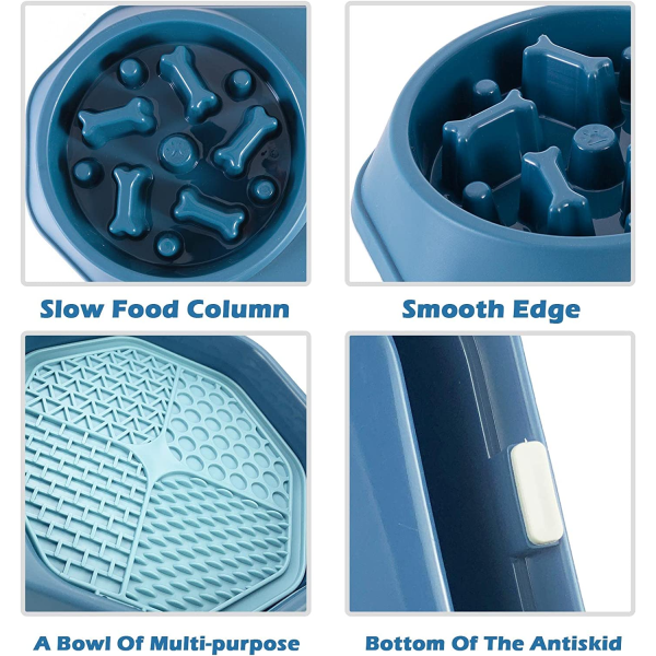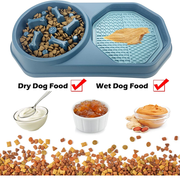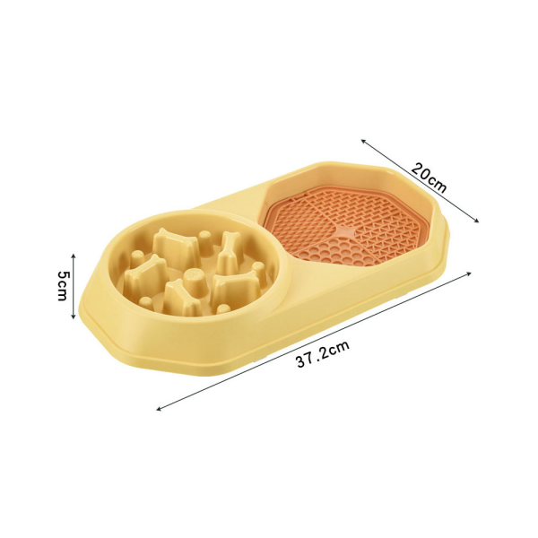 Plato para comer lento con plato de lamer. Material: polipropileno. Medidas:37.2 cm x 20 cm x 5 cm.