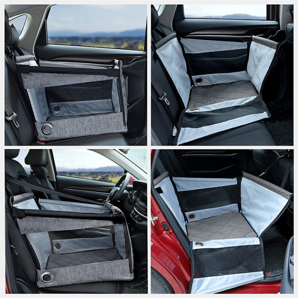 Booster para carro. Material: tela de oxford resistente al agua, tela de malla transpirable,tubos de pvc. Medidas: 49 cm x 49 cm x 49 cm x 38 cm