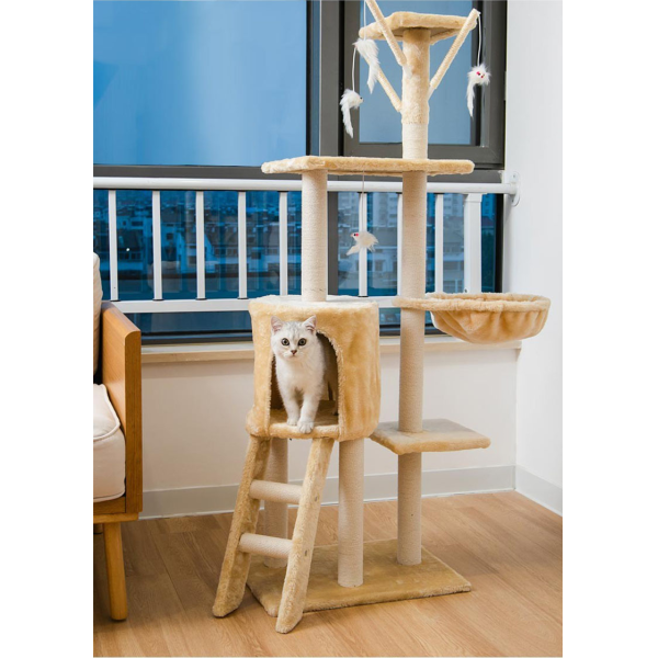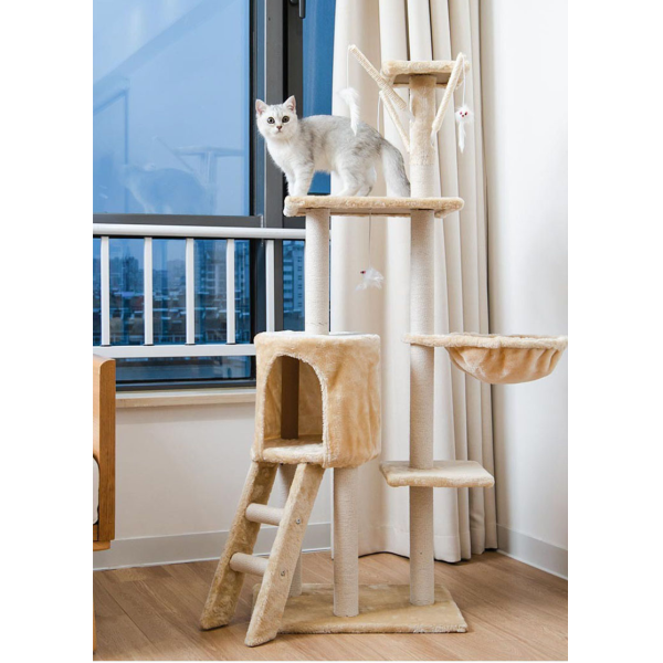 Poste rascador gris oscuro. Material: sisal, lana y tablero aglomerado. Medidas: 138 cm de alto, 48 cm de largo, 34 cm ancho.