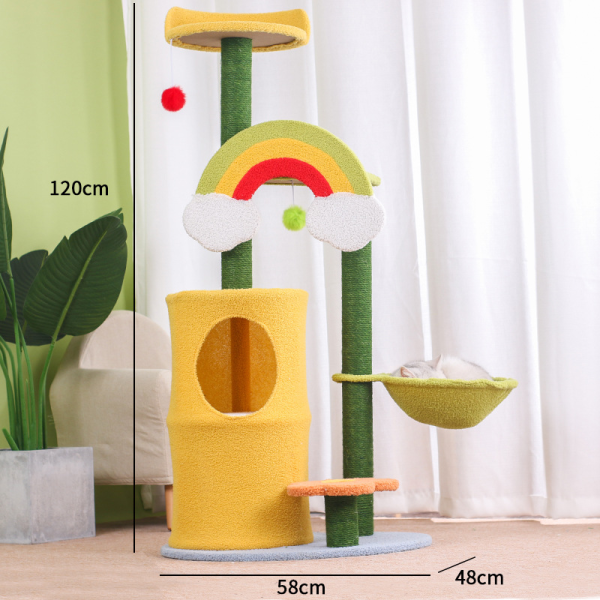 Poste rascador. Material: sisal, lana y tablero aglomerado. Medidas: 120 cm de alto, 58 cm de largo, 48 cm ancho.