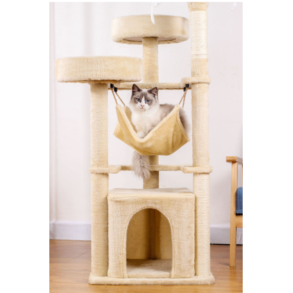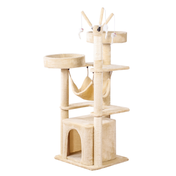 Poste rascador. Material: sisal, lana y tablero aglomerado. Medidas: 132 cm de alto, 50 cm de largo, 45 cm ancho.