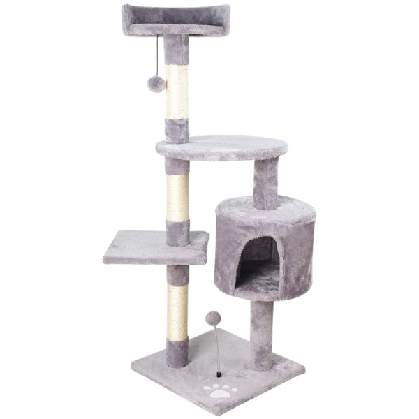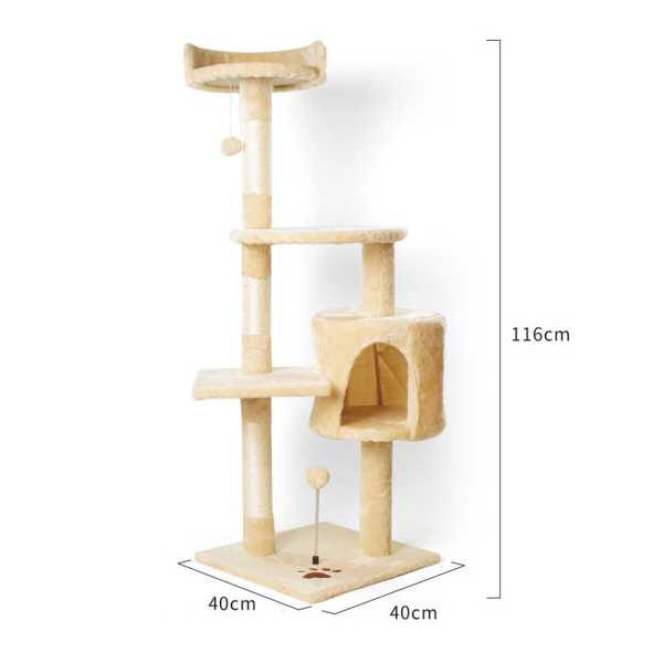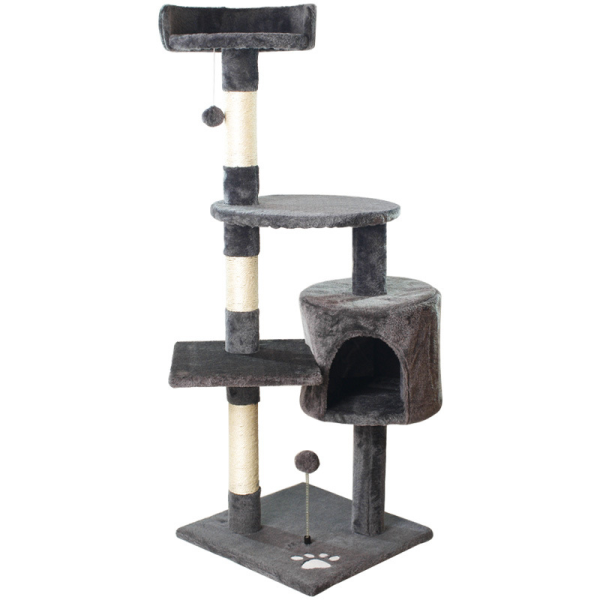Poste rascador. Material: sisal, lana y tablero aglomerado. Medidas: 116 cm de alto, 40 cm de largo, 40 cm ancho.